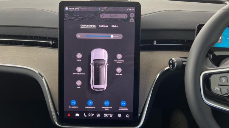 ..Nordico upholstery, 11kw On-Board Charger (OBC), 14.5-inch centre display, 22 5-spoke glossy black diamond cut, 22 5-spoke glossy black diamond cut. rear, 360 camera with 3D view, 5G capability, 7 seats, 7 seats, Active air suspension, Active chassis, Air purifier and remote cabin pre-cleaning, Alarm, Alcohol lock software (not available in the UK), Auto-dimmed rear view mirrors, BLIS (Blind Spot Information System), BLIS (Blind Spot Information System), Birch decor, Bluetooth connection, Body-coloured covered grille, Bowers & Wilkins High Fidelity audio system, Bowers & Wilkins High Fidelity audio system, Charging station cable. 6m, Collision avoidance and mitigation, Connected Safety, Core computing, Dawn headlining, Digital Audio Broadcasting (DAB+), Digital key plus, Door mirror covers. high-gloss black, Door opening alert, Driver understanding, Dual-stage airbags, Electric cabin heater and cooler, First-aid kit, Flush door handles with ground lighting, Four-zone climate system, Front load compartment, Front seat massage, Google Assistant. Google Maps and Google Play Store, Head-up display, Head-up display, Headlight cleaning, Heat pump, Heat pump, Heated grill emblem, Heated rear seats, Heated steering wheel, High Definition Pixel lights, High Definition Pixel lights, High positioned rear brake lights, High-gloss black side window trim, Humidity sensor, ISOFIX mounting points. rear seat, In-car communication, Inflatable Curtain, Interior illumination. high level, Intersection autobrake, Jewel-design air intake controls, Jewel-design media rotary knob, Key tag, Knee airbag. driver side, Laminated side and rear windows, Load cover. second row, Lockable wheel bolts, Lower door mouldings. High-gloss Black, Manual cushion extensions. driver and passenger, NFC smart card key, Nordico upholstery, Occupant sensing, Over-the-air updates (OTA), Panoramic roof. fixed, Panoramic roof. fixed, Park Pilot Assist, Passenger airbag cut-off switch, Pedestrian and cyclist steering avoidance, Pilot Assist, Pilot Assist, Power 4-way lumbar support, Power adjustable steering column, Power driver seat with memory, Power passenger seat, Power side bolsters, Power tailgate, Premium textile interior cabin floor mats, Protection net, Rain sensor, Rear cross traffic alert with low-speed auto brake, Road Sign Information, Roof rails. glossy black, Run-off Road Mitigation, Safe Space Technology, Safety belts, Shift-by-wire single speed transmission, Side impact protection,