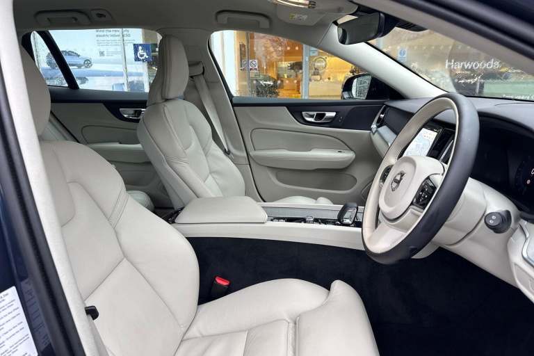 ** 2 years free warranty, 2 years roadside assistance, 2 years MOT cover when finance is taken with Volvo financial services. Terms and conditions apply** FULL VOLVO SERVICE HISTORY, 2 KEYS, FINISHED IN METALLIC DENIM BLUE WITH BLOND LEATHER INTERIOR. 19 INCH ALLOYS, 4-ZONE CLIMATE CONTROL, APPLE CARPLAY AND ANDROID AUTO, LED HEADLIGHTS, BLUETOOTH, FRONT AND REAR PARK ASSIST, HEATED FRONT AND REAR SEATS, GOOGLE SERVICES, HEATED STEERING WHEEL, HEATED WINDSCREEN, HIGH PERFORMANCE SOUND, ISOFIX, KEYLESS DRIVE, ONCOMING LANE MITIGATION, POWER CHILD LOCKS, POWER TAILGATE, REAR PARK ASSIST, ROOF RAILS, WIRELESS PHONE CHARGING.All Harwoods Volvo Crawley vehicles undergo a comprehensive array of tests and multi point checks, allowing our customers to buy with confidence and peace of mind. These checks include a 150-point checklist alongside mileage and history checks. All work is carried out by Volvo trained technicians to Volvo standards using only genuine Volvo parts where replacement is required. HARWOODS VOLVO CRAWLEY are delighted to offer this VOLVO V60 2.0 B4 MHEV Plus Estate 5dr Petrol Hybrid DCT Auto Euro 6 (s/s) (197 ps)**buy with confidence - We are proud to be part of the Harwoods group, a family run business established in 1931. With 17 retailers within our group, we have access to over 1000 vehicles. So, if this isn't the car for you, please contact us and we will find the right one for you** If this isn't the right car for you our wider selection of stock has spec to include Sunroof, Leather, Heated Seats, Towbar, 360-degree camera, Bowers Audio, Panoramic Sun Roof, vehicles with the Ultimate Spec, Tow Bar, other colour options including Black, Blue, Silver, White, Red & Grey, & Euro 6 ULEZ compliant drive trains.”?
