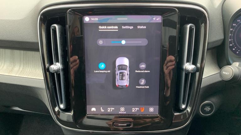 This 2025 Volvo XC40 B4 Ultra Dark is a Volvo manufacturer approved vehicle with a full dealership service history, having had its last service on 15 January 2026 at 17,475 miles, and benefits from a 24 month warranty. This one owner vehicle features a 2.0 litre petrol hybrid engine, meeting Euro 6 emissions standards. It is presented in the Ultra Dark trim, boasting striking 21 inch alloy wheels in a five triple open spoke diamond cut matt black finish.The XC40 B4 Ultra Dark offers impressive performance, accelerating from 0 to 60 miles per hour in just 7.3 seconds, demonstrating its capability. For your convenience and safety, it includes Keyless Drive with keyless entry and a comprehensive Driver Assist system featuring Blind Spot Assistance. Entertainment and connectivity are enhanced by the Premium Sound system from Harman Kardon and a Bluetooth handsfree system. Furthermore, this model provides ample storage with its large boot space, making it a practical choice for everyday use and longer journeys.