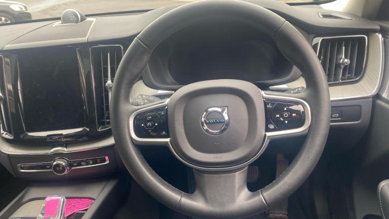 This 2025 Volvo XC60 B5 Ultra Dark presents an exceptional ownership proposition with its remarkably low mileage and comprehensive Volvo manufacturer approval. This Four Wheel Drive, Euro 6 compliant, 2.0 litre petrol hybrid model boasts a full service history, with its last service completed on 31st March 2026 at just 6219 miles, aligning perfectly with its current very low mileage of 6211 miles. The vehicle is further enhanced by an 18 month warranty, offering peace of mind for its next owner.Experience a refined drive with the XC60 Ultra Dark, featuring striking 22 inch diamond cut alloy wheels in a five double spoke design. Inside, enjoy the comfort of heated front seats and the convenience of 4 zone electronic climate control. Advanced technology includes a head up display and the Pilot Assist and Adaptive Cruise Control system for enhanced driving support. With a substantial towing weight of 2400 kg and impressive acceleration from 0 to 60mph in just 6.5 seconds, this XC60 offers a blend of performance and practicality, complemented by its generous boot space, making it a superior choice for those seeking capability and comfort.