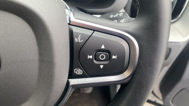 ..8-speed Geartronic automatic, 12.3-inch driver display, 19 5-double spoke glossy black diamond cut, 5 seats, 9-inch centre display, Adaptive power steering, Afterrun parking climate, Air quality system, Air-ventilated subwoofer, Alarm, Alcohol lock software (not available in the UK), Apple CarPlay, Auto-dimmed rear view mirrors, Automatic door locking, Blond headlining, Bluetooth connection, Bright aluminium trim around the side windows, Charging station cable. 6m, Chassis, Comfort front seats, Cruise control, Digital Audio Broadcasting (DAB+), Digital owners manual, Door mirror covers. colour coordinated, Double locking, Dual-stage airbags, Electric cabin heater and cooler, Emergency brake light, First-aid kit, Front grille in high gloss black with chrome frame, Fully adjustable driver seat, Fully adjustable passenger seat, Google Assistant. Google Maps and Google Play Store, Heated front seats, Heated grill emblem, High Performance audio system, High positioned rear brake lights, Hill Descent Control, Hill Start Assist, Home charging cable. mobile 7m (10A), Humidity sensor, ISOFIX mounting points. rear seat, Illuminated vanity mirrors, Inflatable Curtain, Intelligent Driver Information System (IDIS), Intelligent Speed Assist (ISA), Interior mid level illumination, Knee airbag. driver side, LED headlights, Lane Keeping Aid and Lane Departure Warning, Leather upholstery, Load cover. manual, Lockable wheel bolts, Manually foldable rear head restraints, Mechanical release second seat row, Metal Mesh aluminium decor, Oncoming Lane Mitigation, Panoramic roof, Park assist camera. rear, Park assist. rear and front, Passenger airbag cut-off switch, Pedals, Power 2-way lumbar support, Power child safety lock, Power outlet. load compartment, Power retractable door mirrors, Power tailgate, Protection net, Protective cap kit. Matt Tech Grey, Rain sensor, Rear centre armrest, Remote key, Road Sign Information, Roof rails. bright aluminium, Safety belts, Side impact protection, Slippery road alert, Start/Stop technology, Steering wheel remote control, Tailgate scuff plate. plastic, Tailored gear shift, Tailored steering wheel. Charcoal, Tempered side and rear windows, Temporary mobility kit, Textile interior cabin floor mats, Ticket holder, Tinted rear windows, Trailer lamp control, Two-zone climate system, Tyre pressure monitoring, Volvo Cars App remote functions, Volvo tread plates. aluminium, Warning triangle, Whiplash injury protection, Wiper blades with