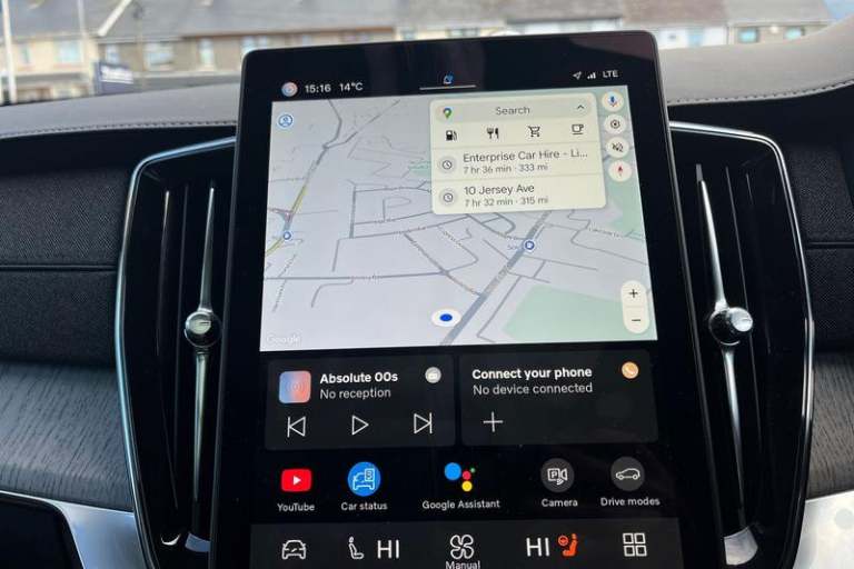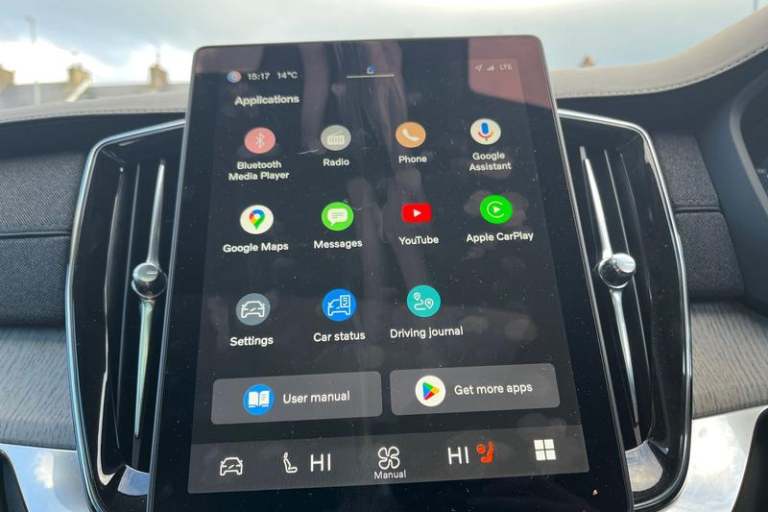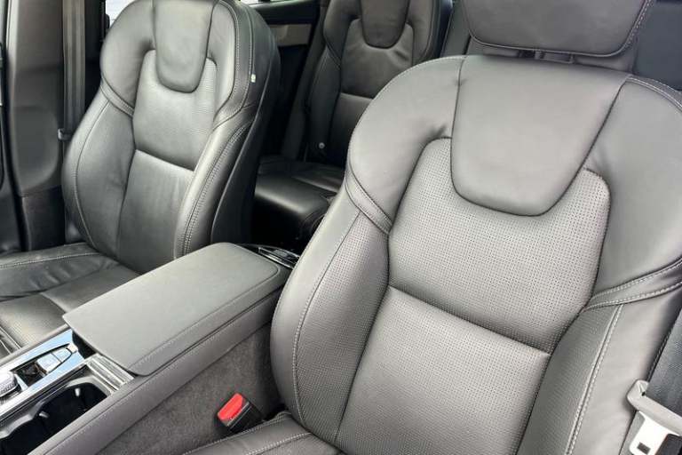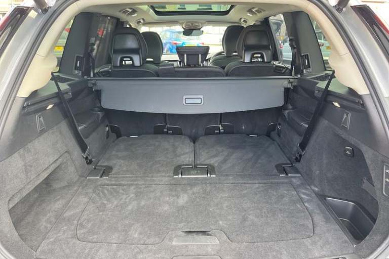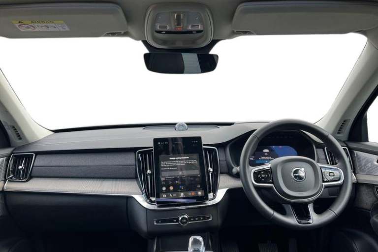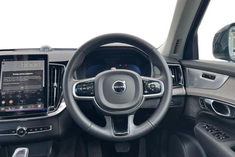 11.2 centre console touch screen, 12.3 Progressive Driver Display, 360 degree surround view parking camera with side proximity sensors, Adjustable steering wheel force, Apple carplay (wired), Bluetooth handsfree system, Driver alert control with lane keeping aid, Driver assistance (pilot assist and adaptive cruise control), Driver awareness - Blind spot information system with steer assist, cross traffic alert with autobrake and rear collision warning and mitigation, Driver Understanding System (Eye Tracking), Emergency call service, Front and rear park assist, Google Automotive Services - Navigation with Voice recoginition and google assistant, Handsfree power tailgate opening and closing, Intelligent speed assistance, Oncoming Lane Mitigation, PAS, Power operated tailgate, Service interval indicator, Speed sensitive steering, Trip computer, Volvo on call, Wireless/Inductive Mobile Phone Charging, Adaptive brake lights with high level LED brake lights, Auto dimming interior + exterior mirrors, Auto folding and heated power door mirrors, Automatic headlight levelling system, Automatic matrix LED headlights with Adaptive shadow technology and Active high beam, incorporating Day running lights, Body colour bumpers, Dark tinted windows - rear side windows and rear screen, Front and rear power windows, Headlight cleaning system, High gloss black door mirrors and window surround, High gloss black front and rear bumper deco, High gloss black front grille and deco, Home safe and