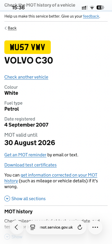 Our vehicle history check is provided for guidance only. Please check all the details with the seller before purchasing