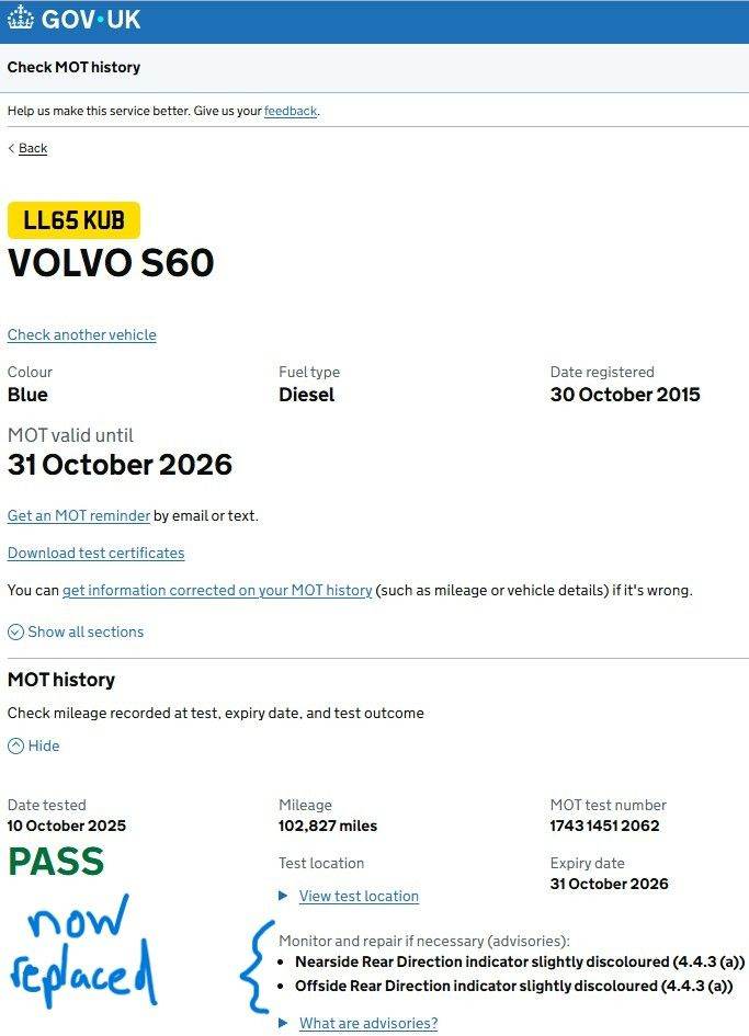 Current Service/MOT status - Less than 50 miles driven since last serviced (Oil Change, Oil Filter, Air Filter, and Fuel Filter). MOT valid until the 31st October 2026 - the only advisories were two slightly discoloured rear indicator bulbs which have now been replaced.