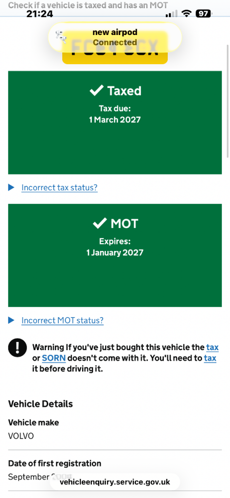 This vehicle has not been reported stolen, scrapped, exported or flagged as unroadworthy.
