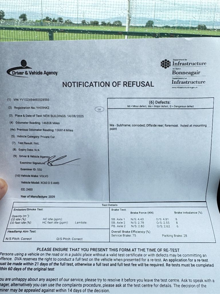 Car drives well full service for MOT completed