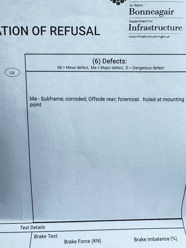Rear subframe needs fitted