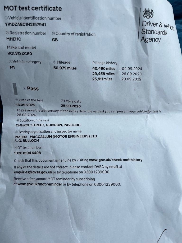 Passed previous MOT’s with no problems.