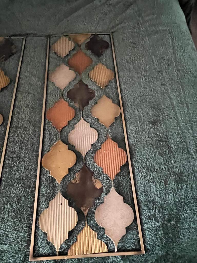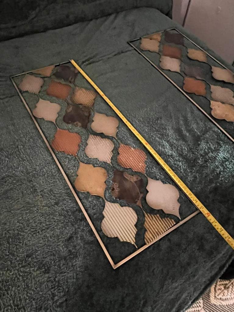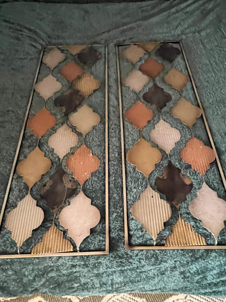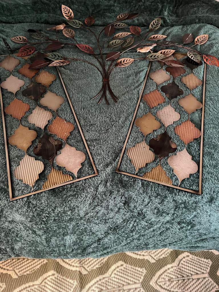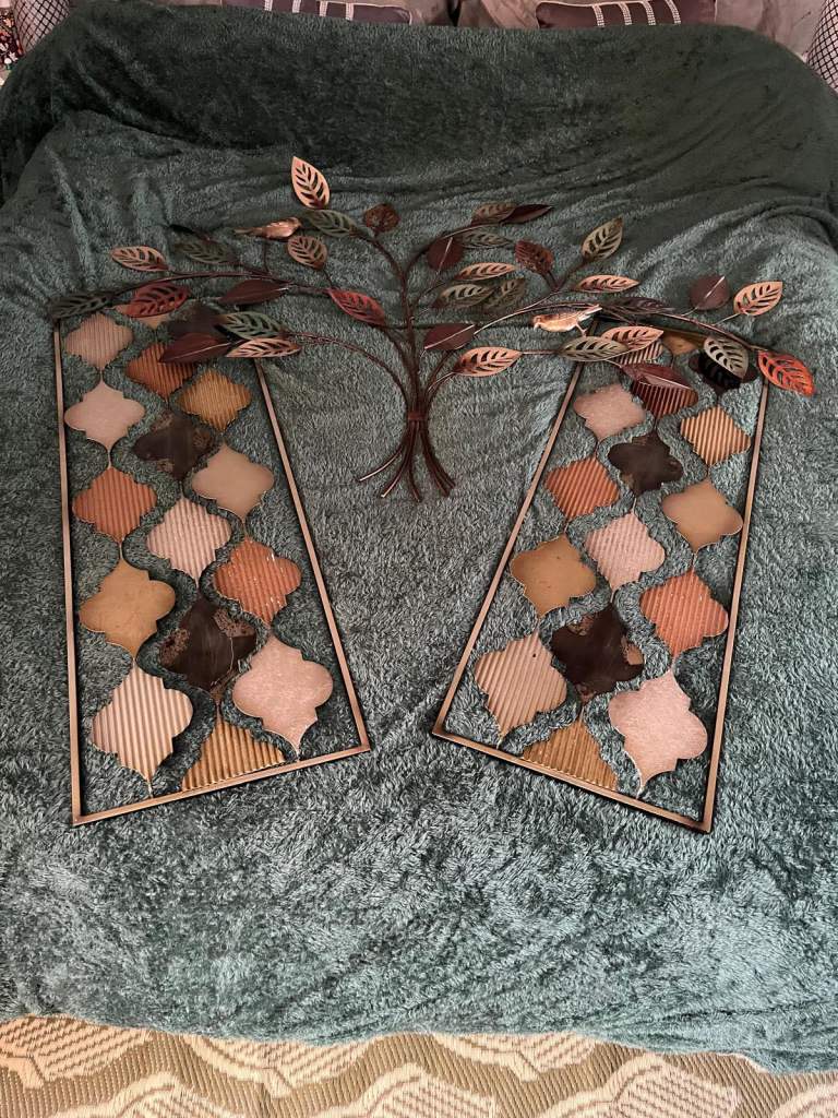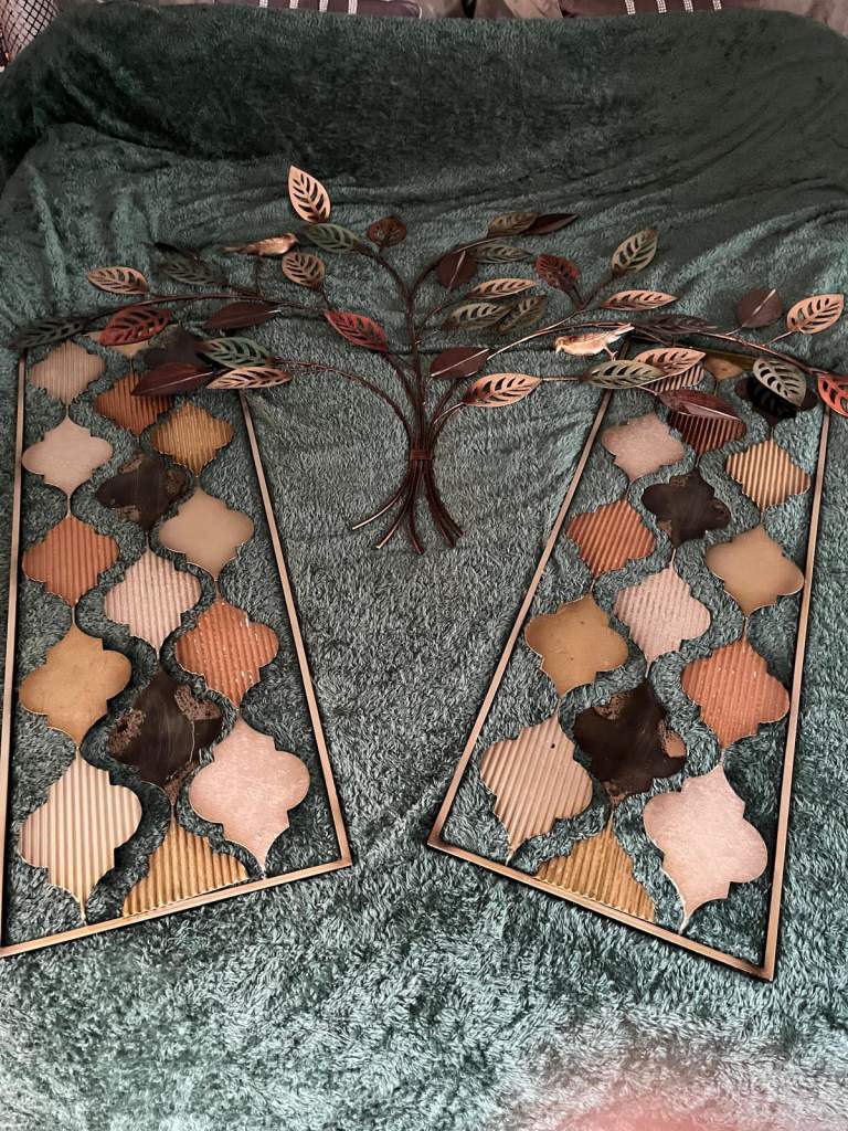 Lovely set of metal wall art pieces, perfect for adding character to any room.