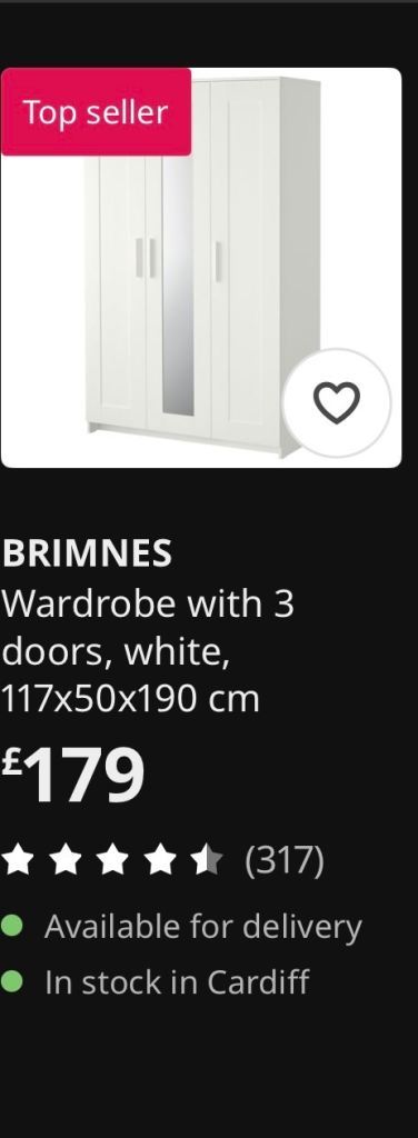 Dimensions height 195 cm, width 105 cm, depth 55 cm