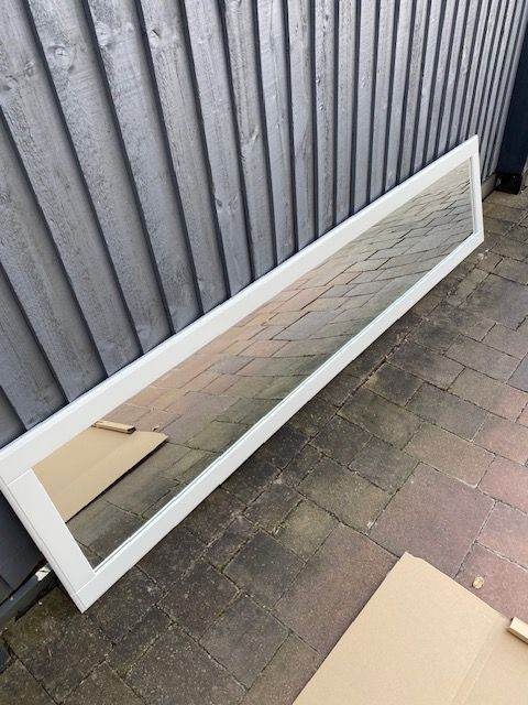 Two used IKEA Tyssedal Mirrored Doors, White, 500mm x 2290mm, good condition, 2 new sets of hinges, FREE Collection only
