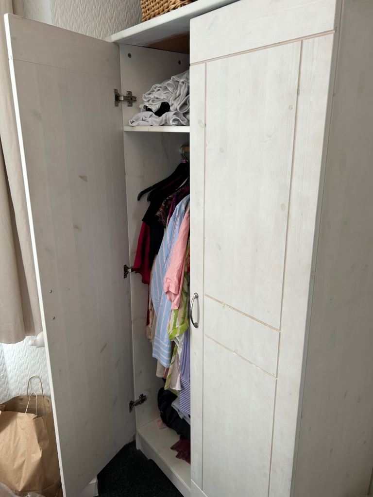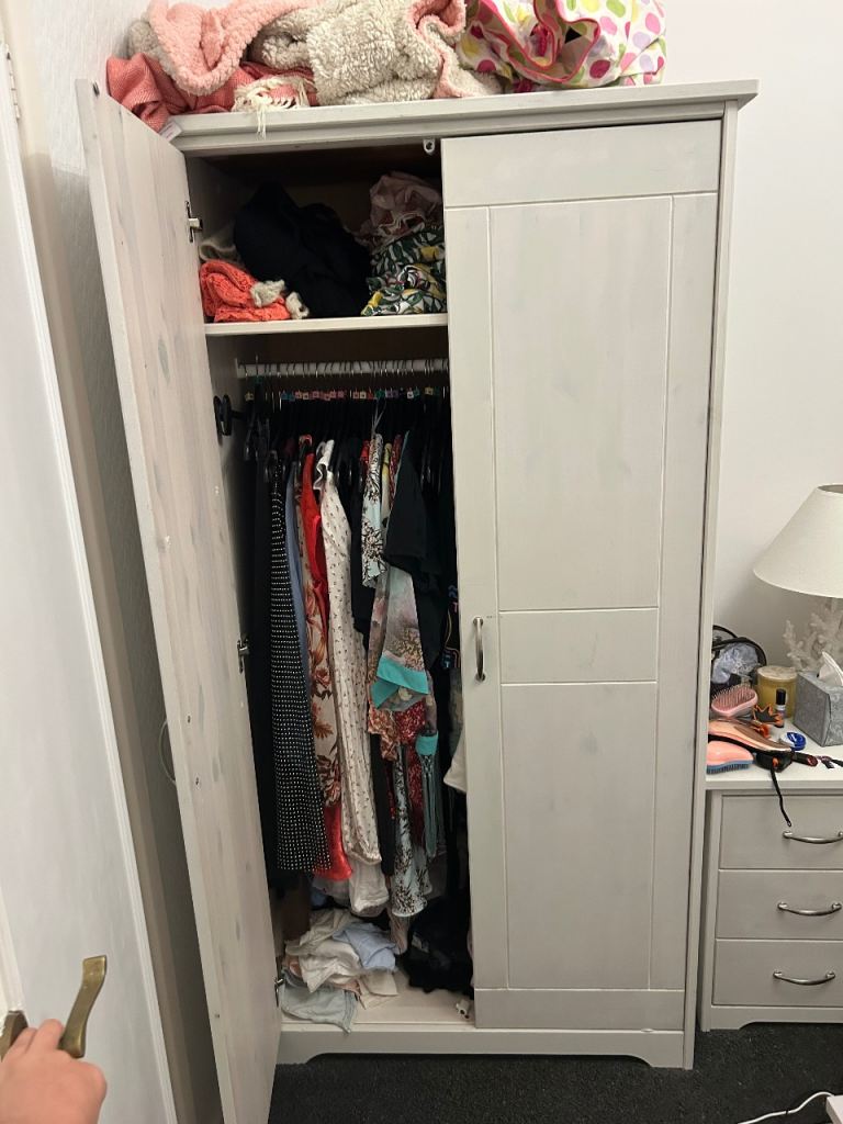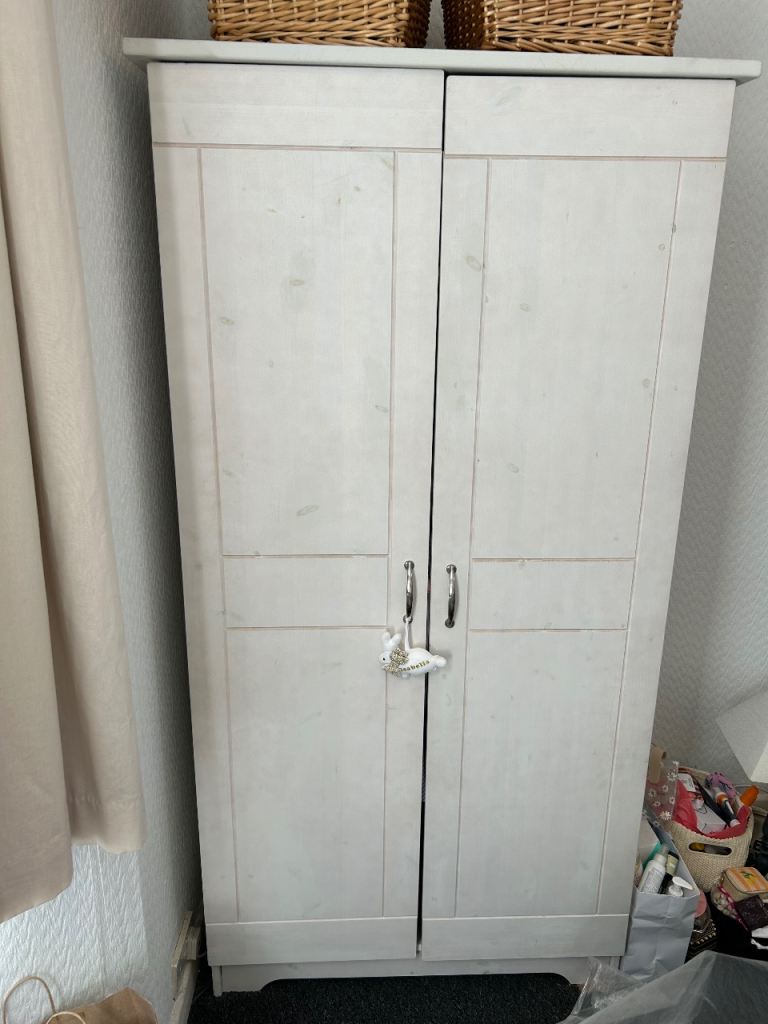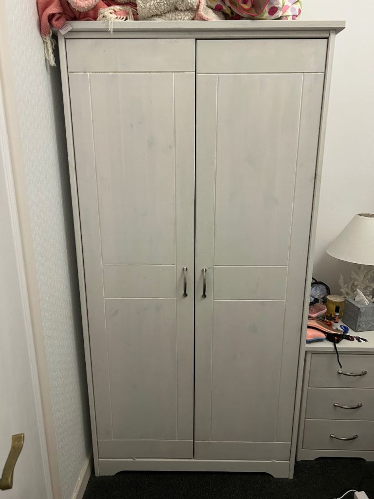 Posting for under a month2x John Lewis Whitewashed Wooden Wardrobe