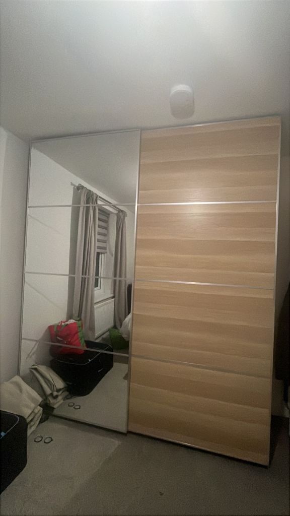 Nearly new, hardly used. Small marks to top of the door - see photos. WILL NEED TO BE DISMANTLED. Please collect. 119cm wide, 175cm high, 55.5cm deep.
