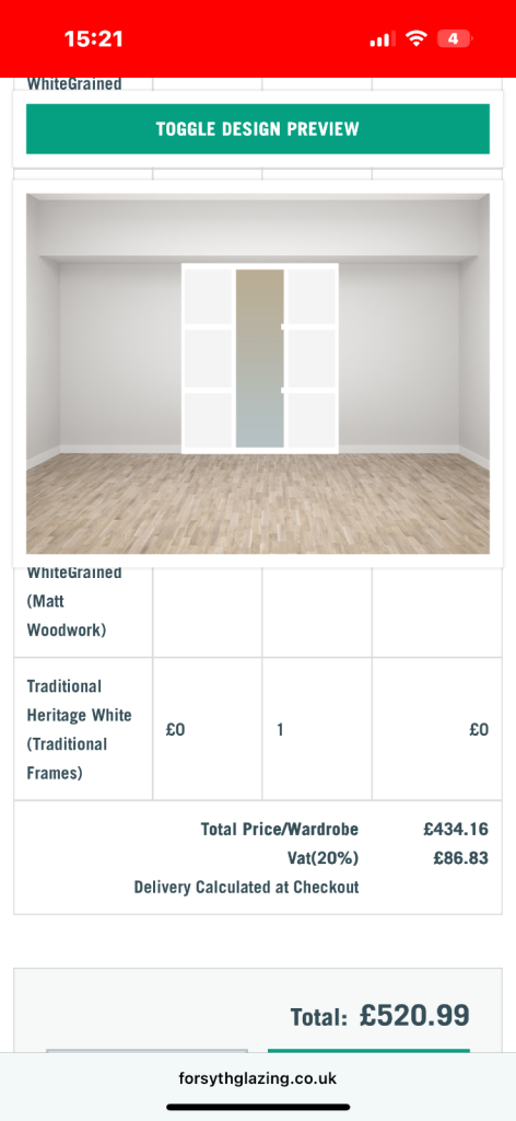 White woodgrain panels, white aluminium frame, one full size mirror.