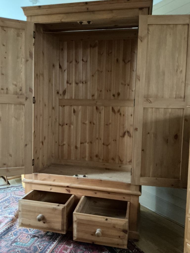 Double wardrobe from Olney pine - with hanging rail and drawers, can be dismantled into 3 parts .