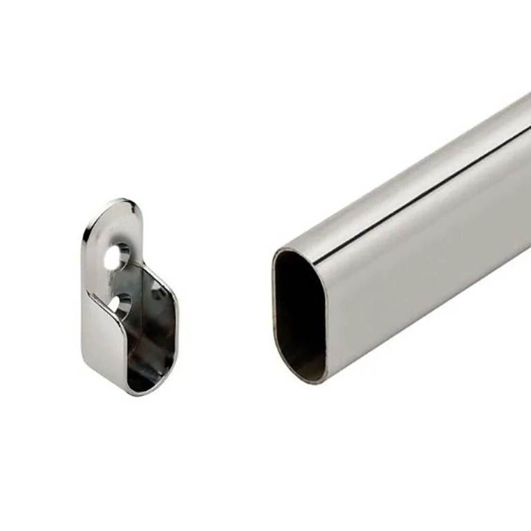 16 x 32mm oval steel tube 1.5mm thick walls with chrome plating finish, very strong.