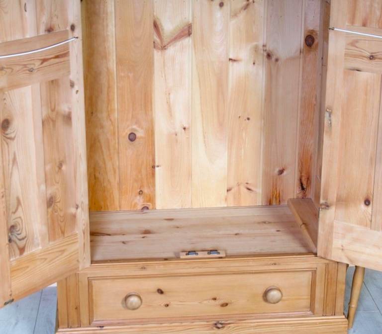 Quality made waxed farmhouse pine wardrobe, tongue and groove with dovetail joints.