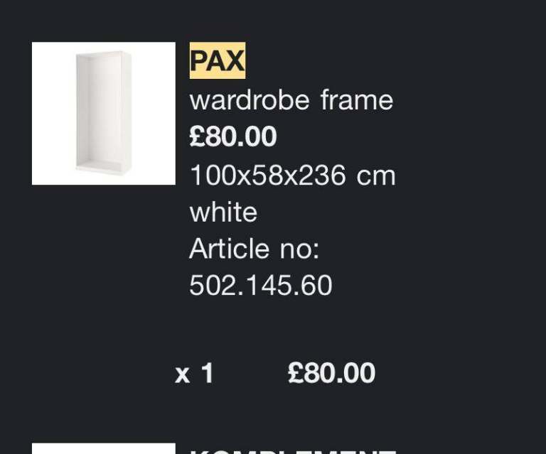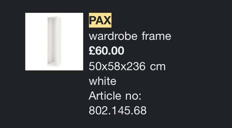 Recently bought this wardrobe, only to discover it's too tall for my loft conversion bedroom. It is second hand but as good as new. Sadly I don't have any photos of it built so have included images from the previous owners IKEA order. I'd reached out to many people on taskrabbit and airtasker and several guys confirmed they've built many PAX wardrobes before quite easily without instructions. It's a really lovely wardrobe with shoe storage and jewellery tray/drawer, just what I was looking for, but just doesn't fit with my lower than average ceiling. FREE to a good home. Must collect, ideally this weekend please.