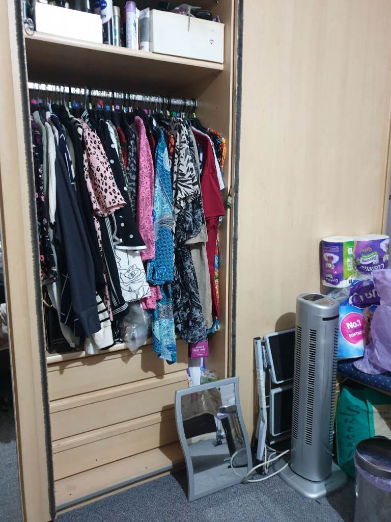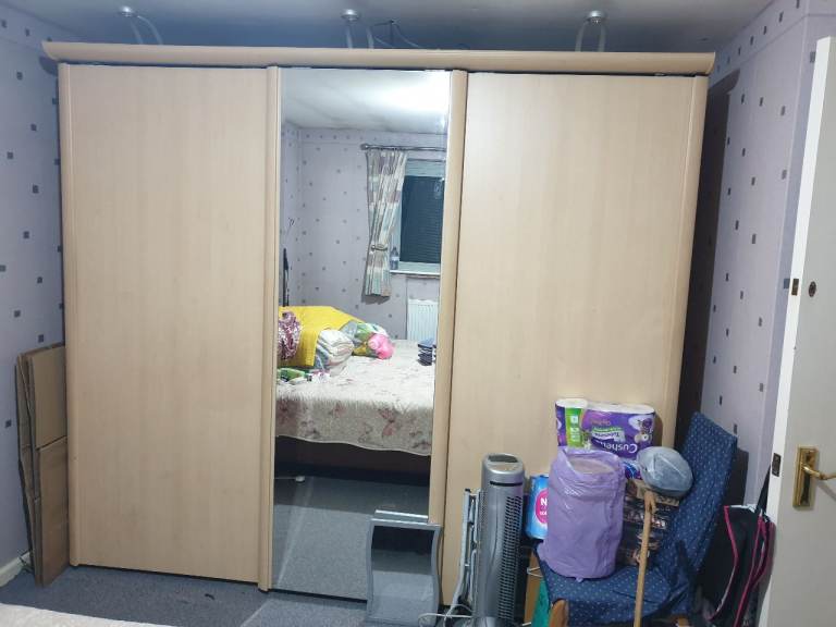 Full size (W250cm x H220cm) free standing sliding wardrobe in mint condition. Comes with three lights on top.
