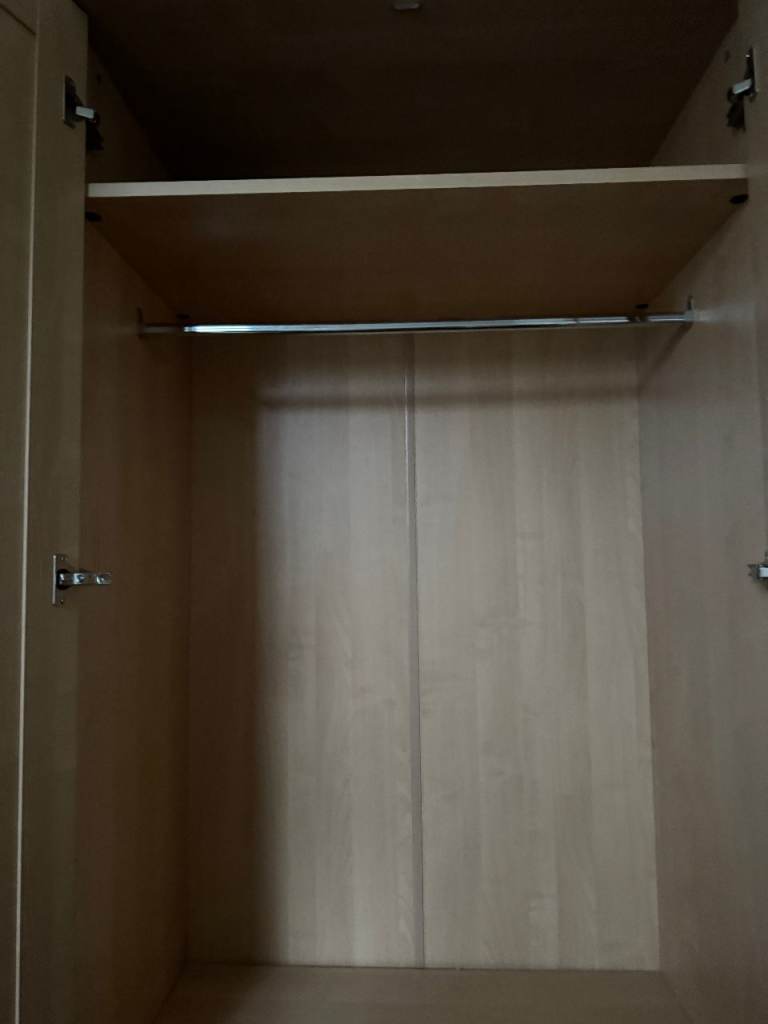 This is a light oak veneer Mamas and Papas wardrobe, that has had very light use and so is in excellent condition. It has a bottom drawer and top shelf.