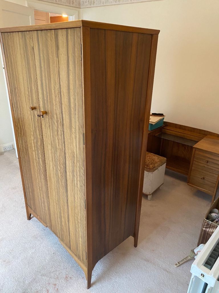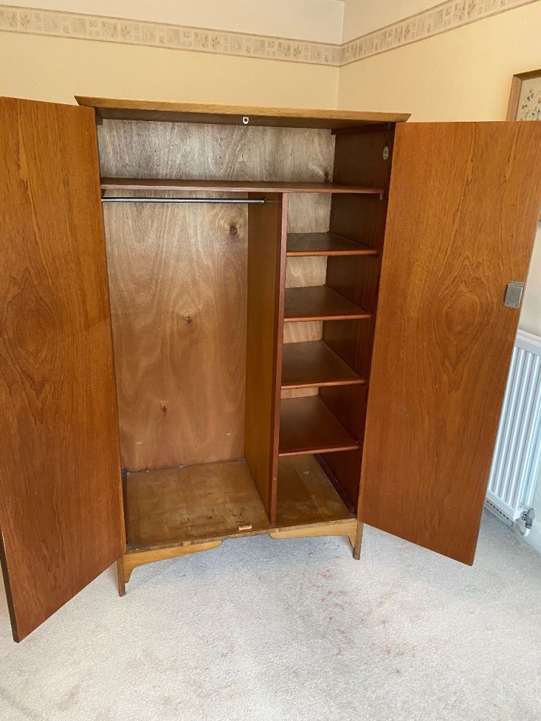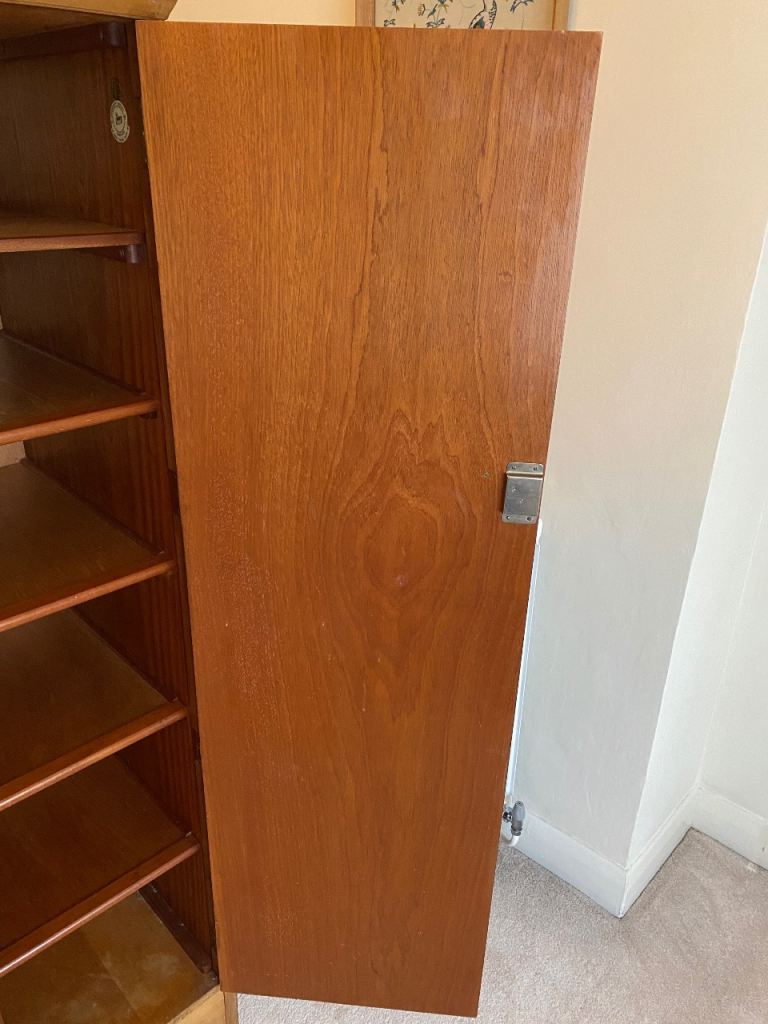 Date estimate from mid to late 1950s, owned by 1 family from new, I’m guessing it is Walnut veneer, in very good condition overall although not mint as it was used on a daily basis. Lock still works & complete with key. Collection only from London E4.