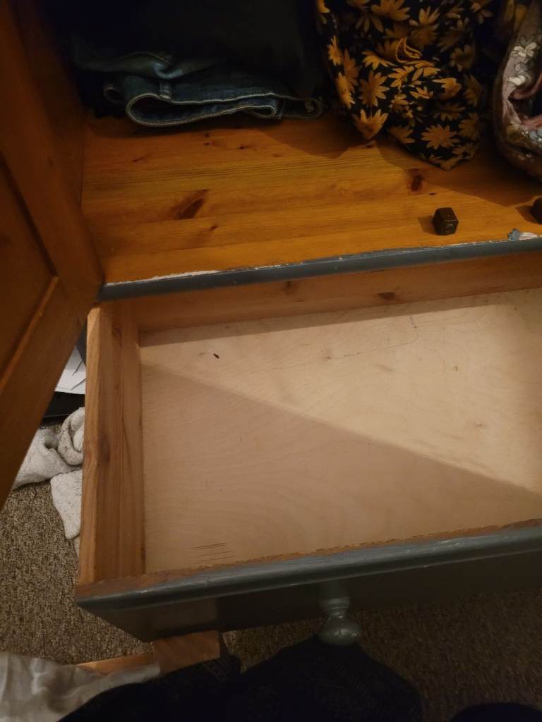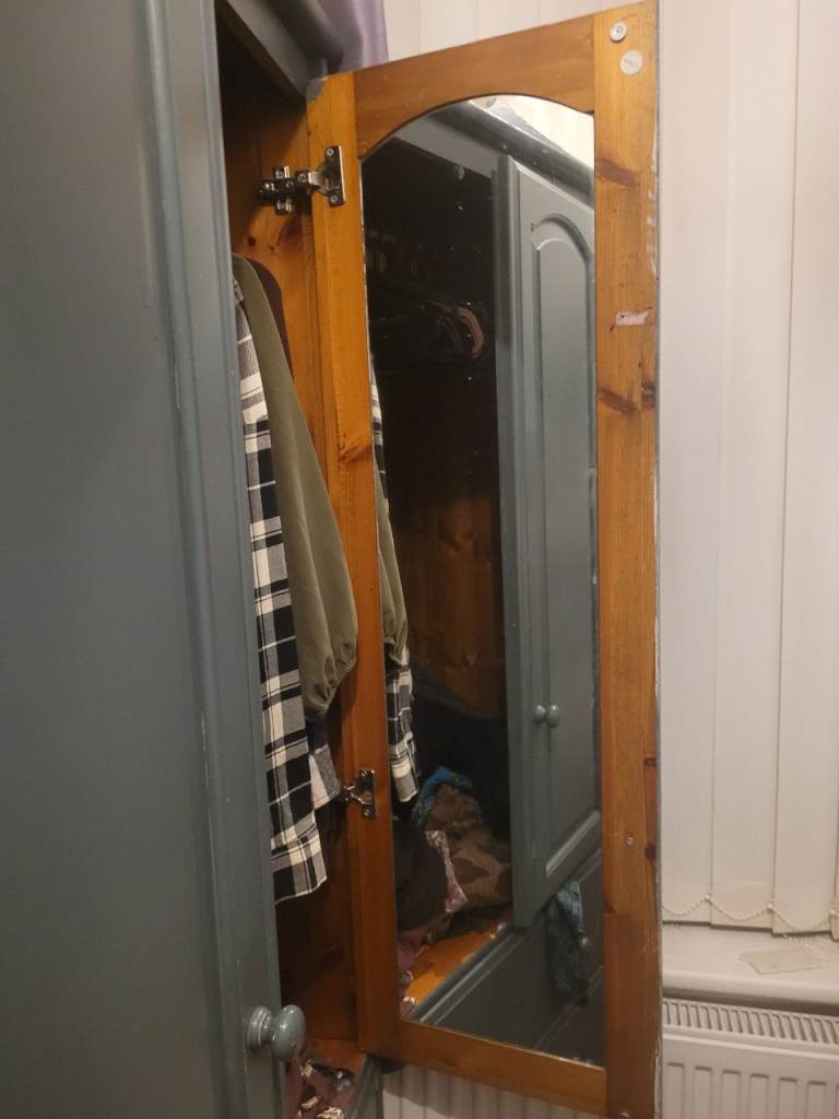 Gray painted oak wardrobe very strong and heavy wardrobe with mirror inside and 2 deep drawers