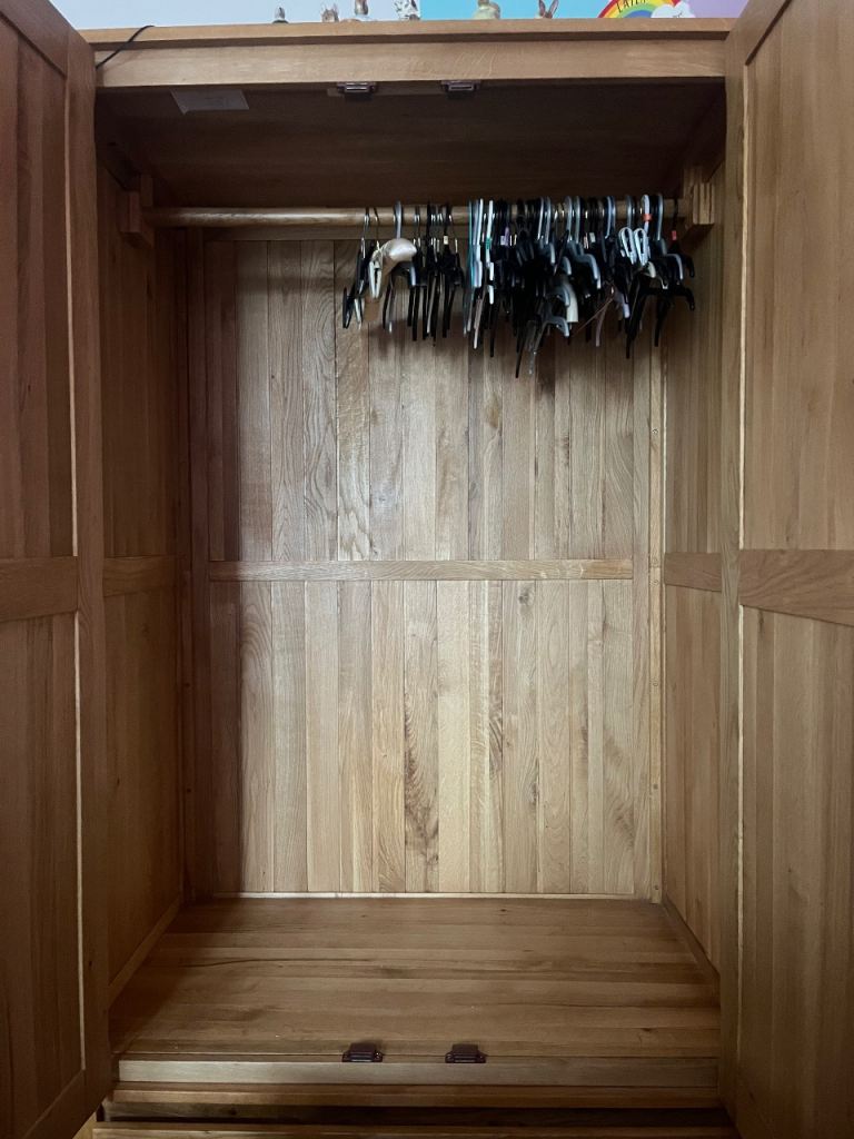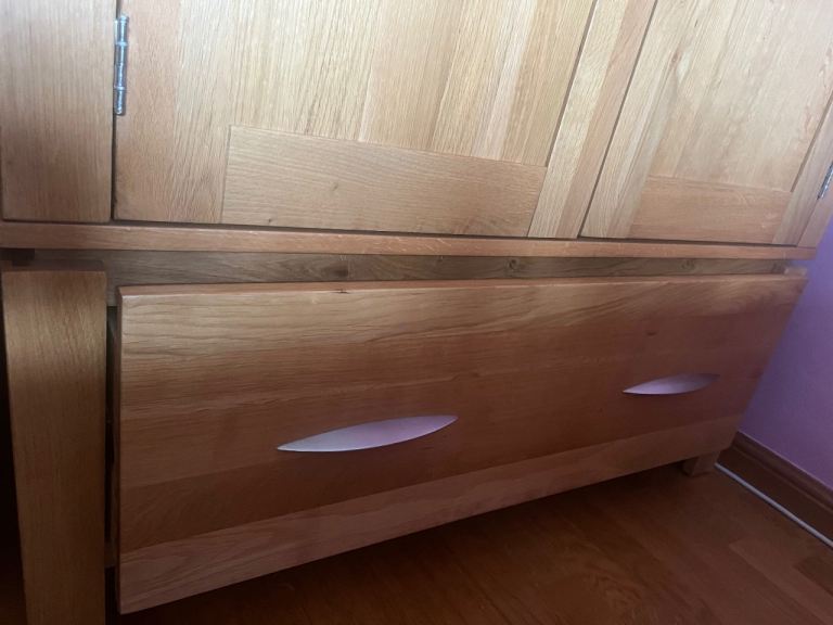 Large hardwood wardrobe 185cm height, 100cm width, 60cm depth. In excellent condition. Drawer works fine, needs WF40 or similar on runners periodically. Sold as seen. Available for collection