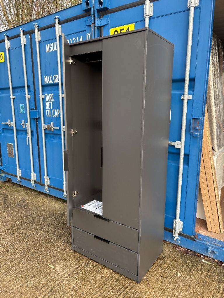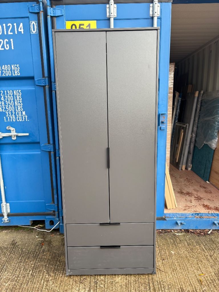 Ready assemble Hong Kong graphite 2 drawer wardrobe.