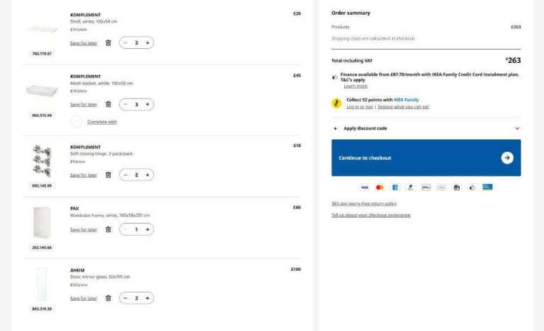 Save yourself a LOT of time travelling 30 - 40 mins to your nearest Ikea, walking around the endless isles and floors, writing down where it's located, loading it onto a trolley, queueing up to pay, loading up your car and then driving all the way home, only to have to assemble the 15,000 pieces in all the boxes.