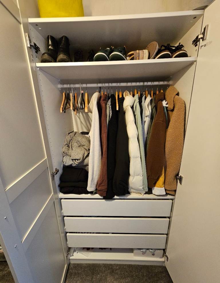 On the left and right is the 50cm display style cabinets/warbrobes with drawers and shelves.