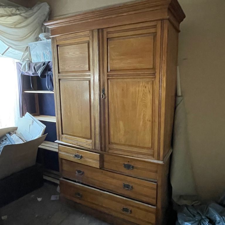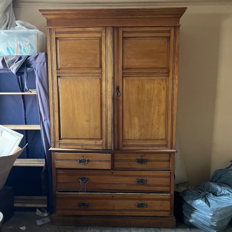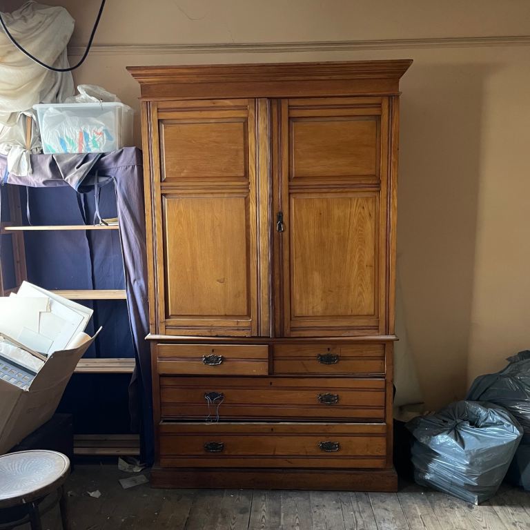 Large Antique linen press by James Shoolbred and Co. Solid Oak 1800’s
