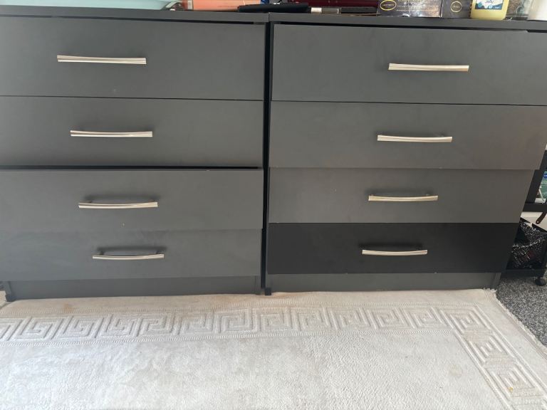 With mirror, hanging rail and bottom drawer.