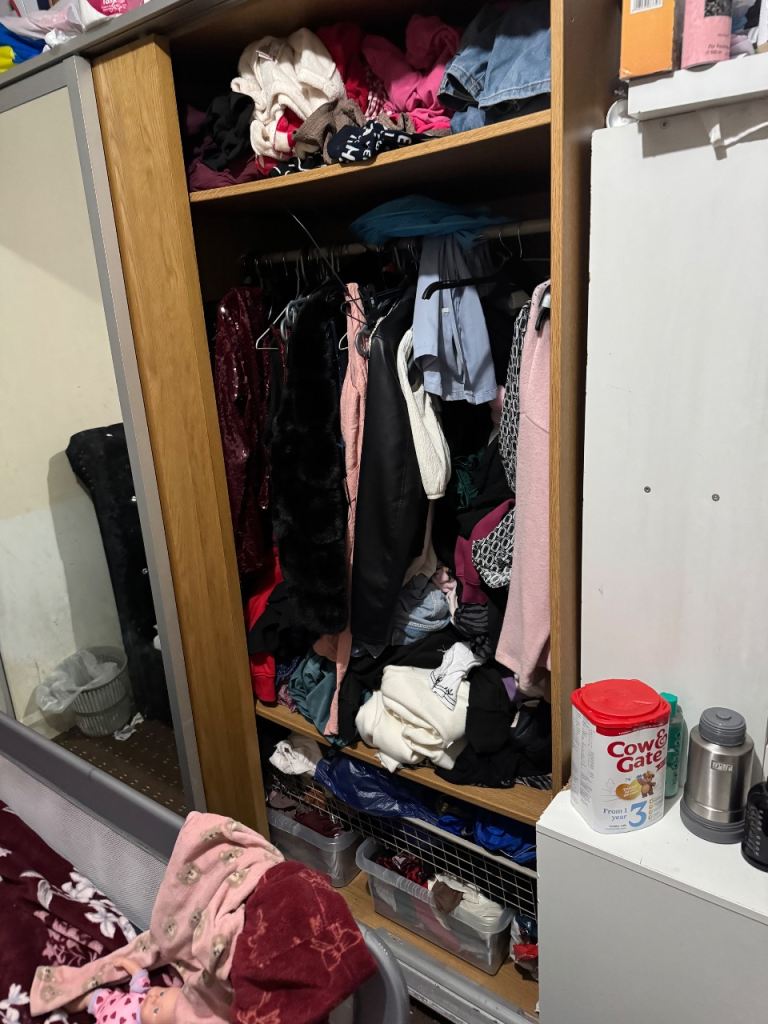 Big wardrobe and lot of space.Please ignore the mess in the wardrobe