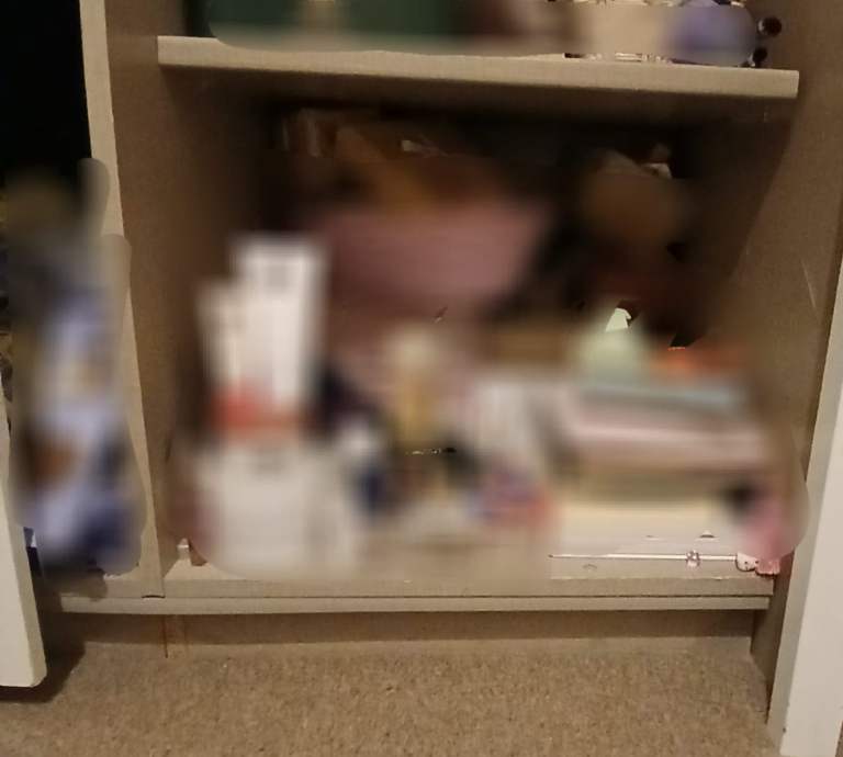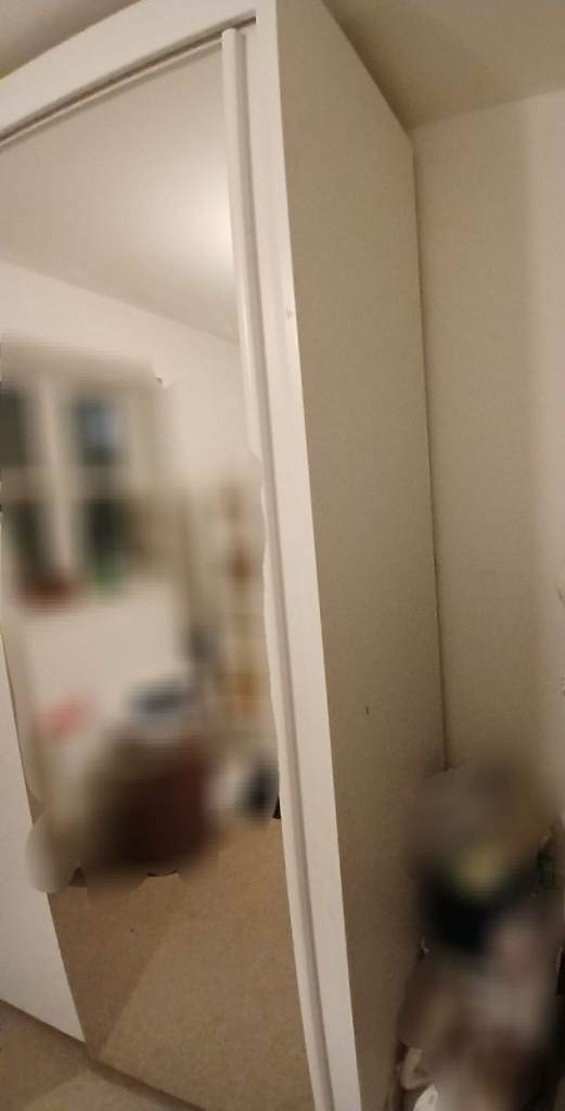 See all pictures,has sliding doors. Large mirror at the front. May have some stains,but nothing major. One of the shelves has come off,but can be put back in again with the right shelving pegs. Message for measurements xx collection only