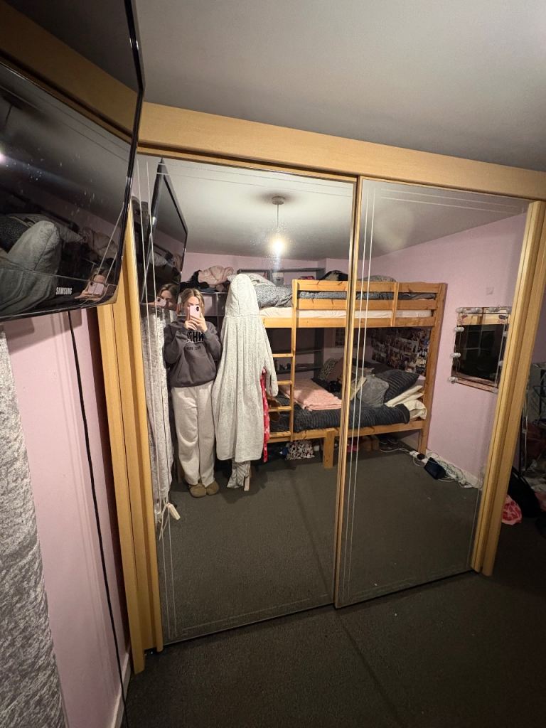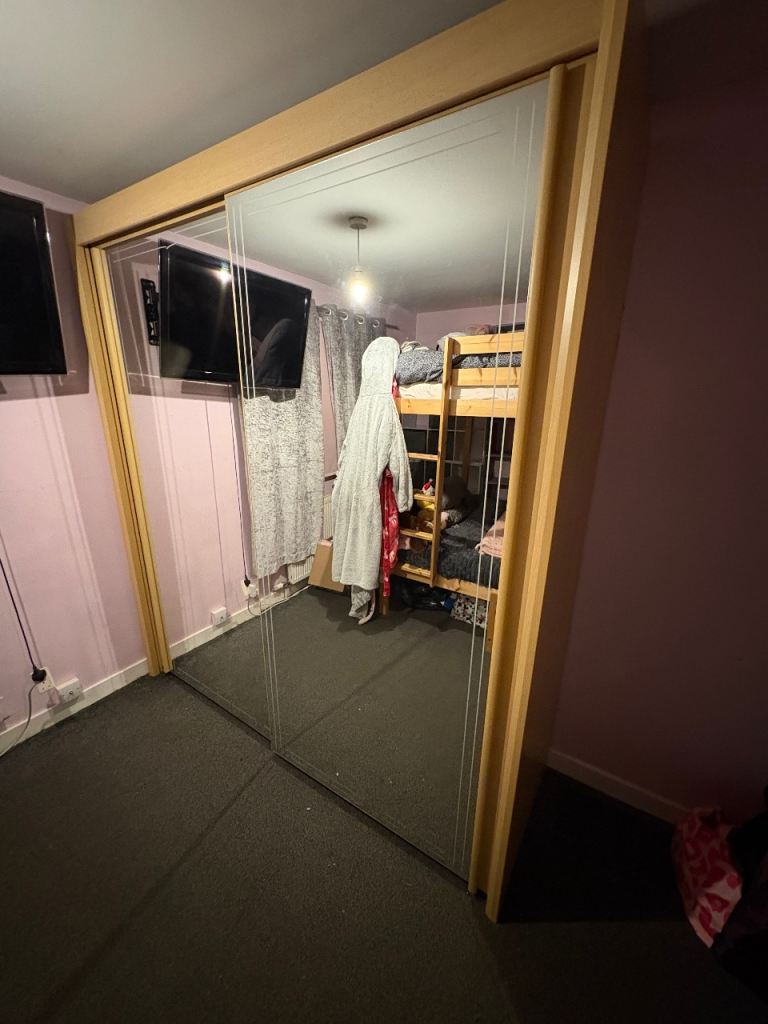 This is a double sliding wardrobe for sale, dimensions are 65cm depth, 222cm height 201cm width, this is solid and will be dismantled collection available from Kingussie , 3rd photo shows space that is available on both sides