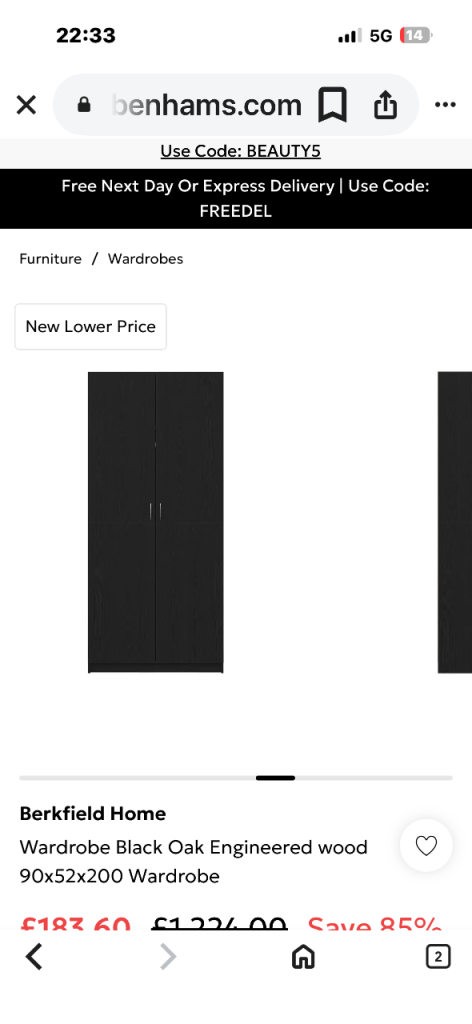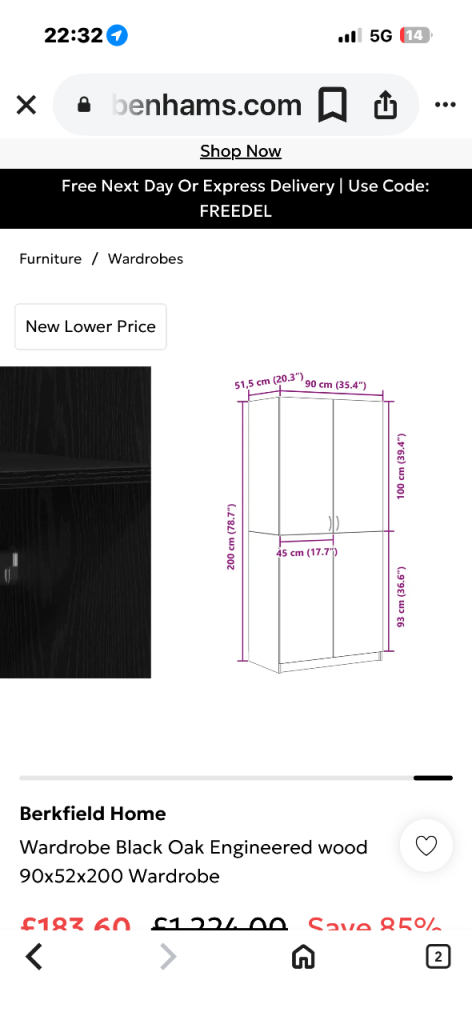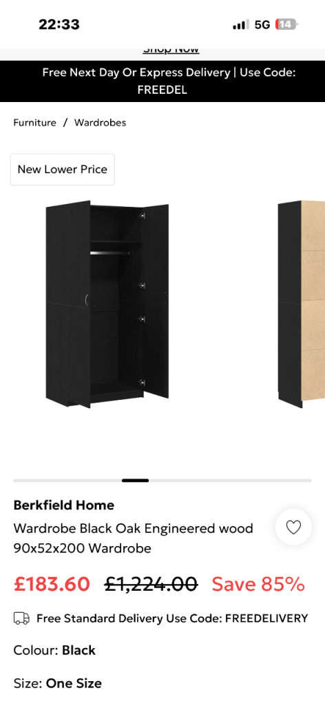 Posting for 14+ yearsNew boxed x2 black wood wardrobes