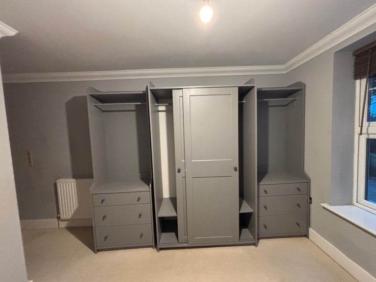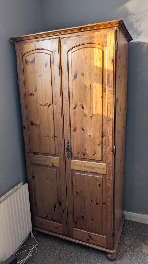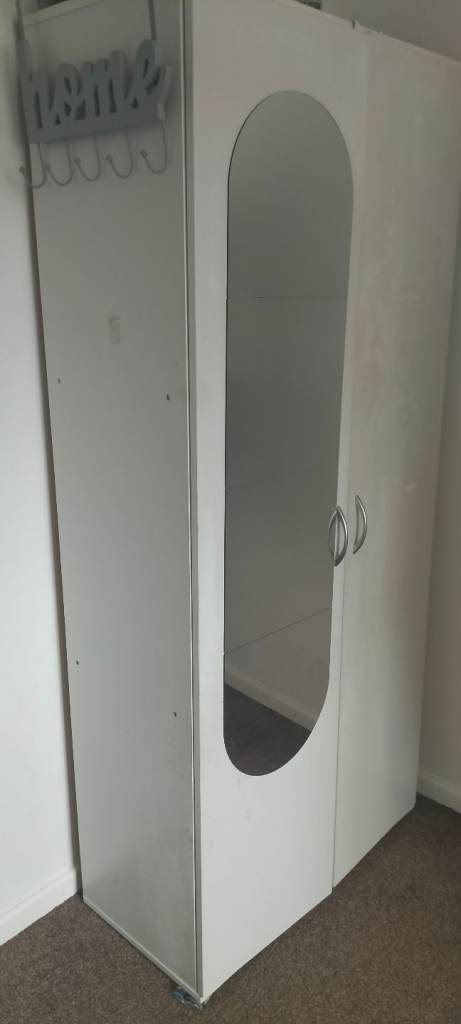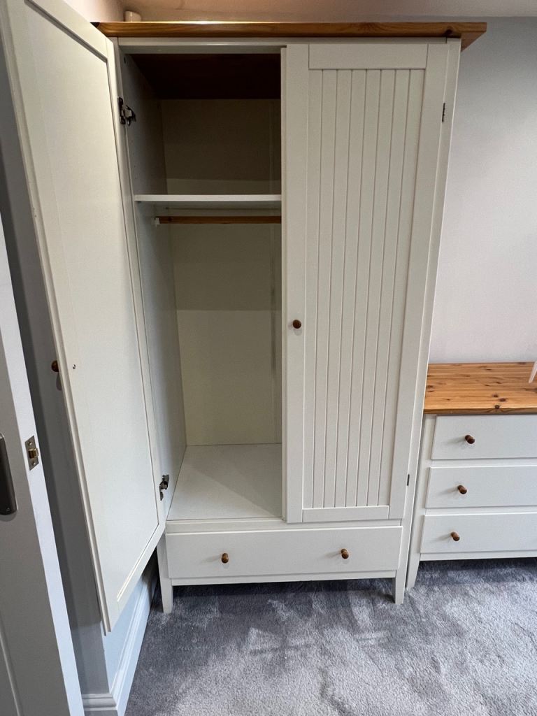 White painted pine wardrobe. Dismantled for easy transport, but I would be happy to reassemble it if you prefer to transport assembled.