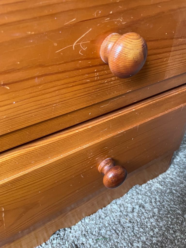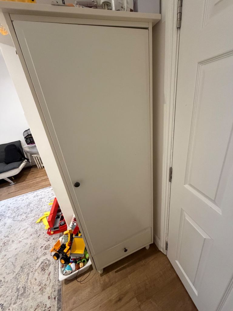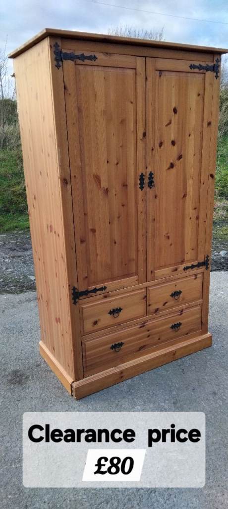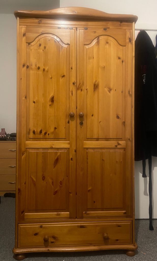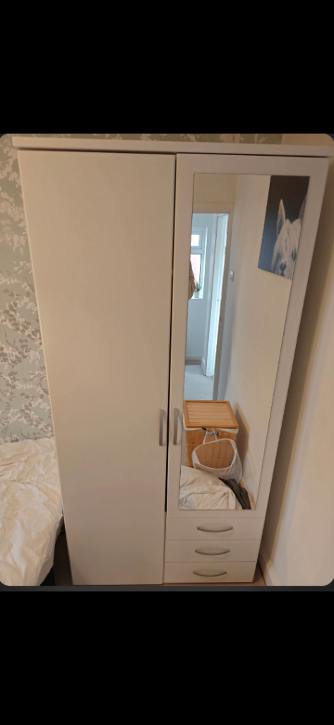 125cm wide x 180cm tall x 52cm deep. A few marks around the handles on the doors and drawers but not really noticeable. There is also a scratch on the left panel as shown in the last picture. Comes from smoke and pet free home. Collection only from Castle Bromwich, Birmingham. The single section can be separated from the double wardrobe to make it easier to transport.