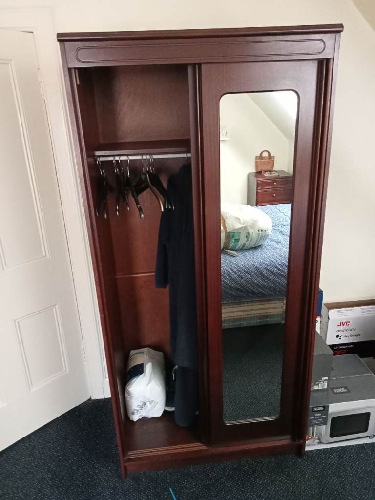 Quality Purple Effect Lacquered mirrored wardrobe with matching 3 drawer unit and 3 bedside unit.