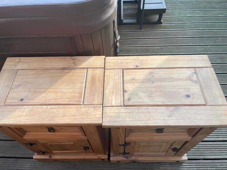 2 bedside tables wooden just needs a clean no dents one drawer and one cupboard on each