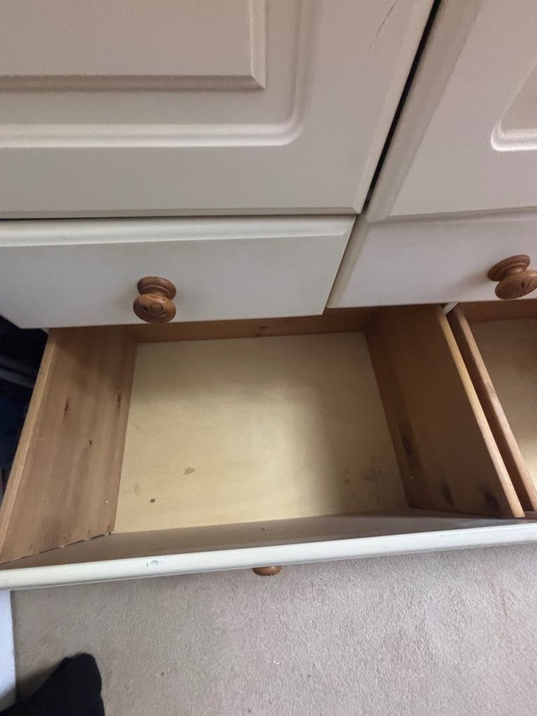Overall good condition with some minor marks see pictures and a small draw handle broken but still works and not noticeable, but sturdy and fully functional.