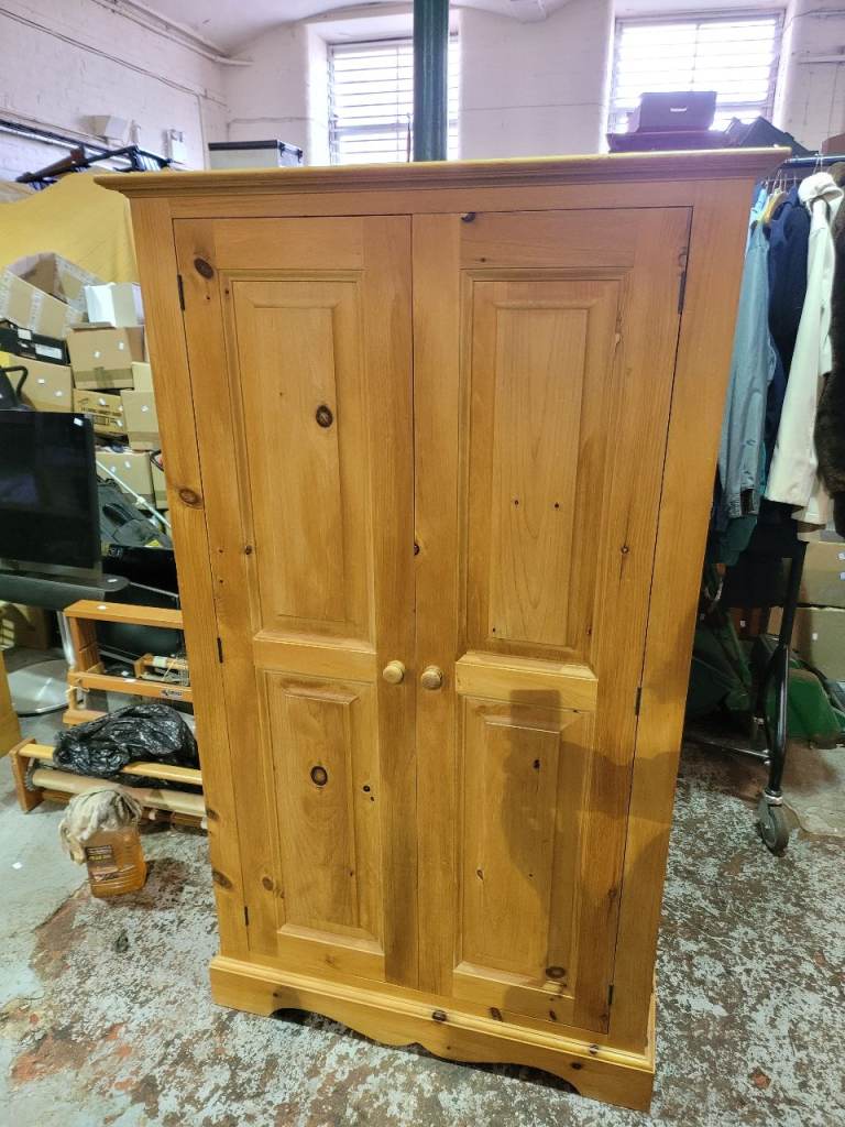 Solid Pine Wardrobe with Hanging Rail – Good Condition