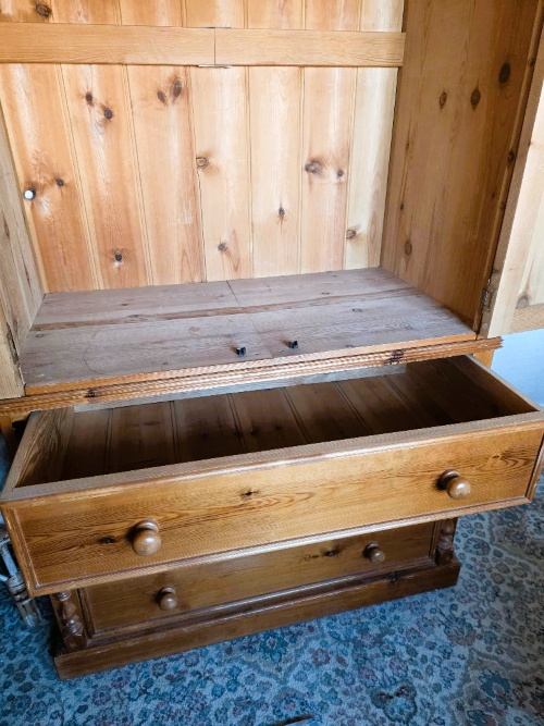 Tallboy Wardrobe 3 Sections Combie Storage – Wood Pine