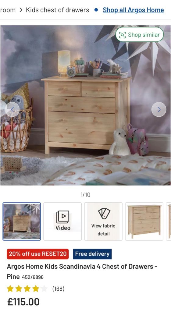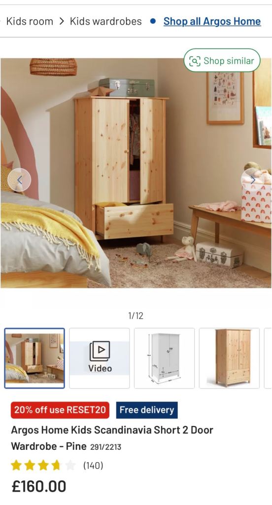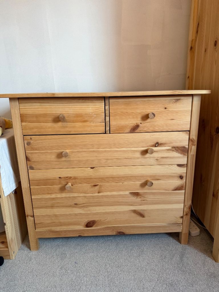 Habitat kids Scandinavia pine wardrobe and drawer set, currently £275 brand new, selling both for £120.