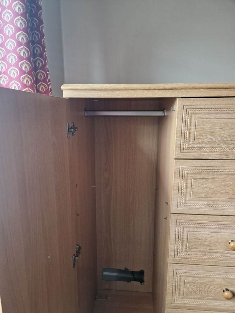 It features one main wardrobe section with a hanging rail and six drawers for storage.