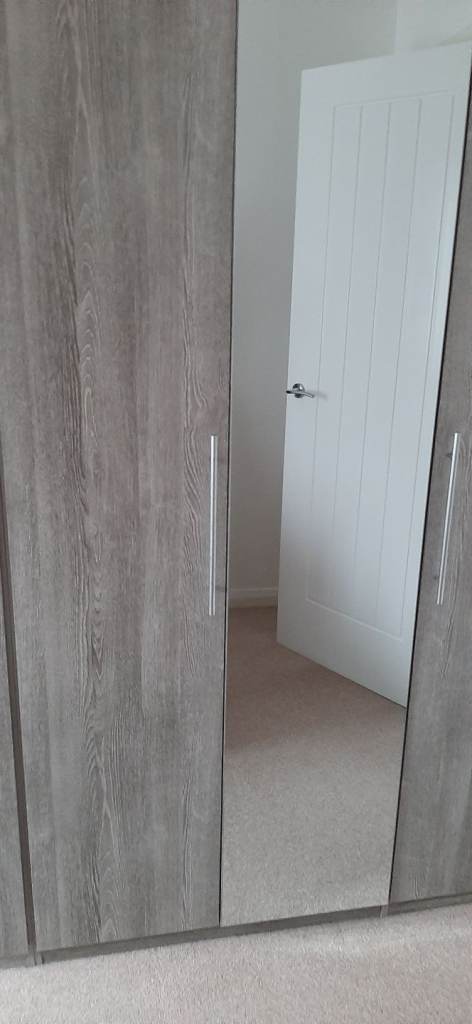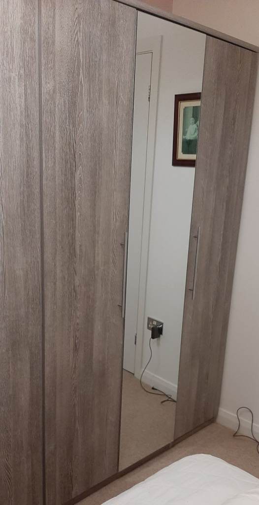A two door and a three door wardrobes with mirror. Excellent condition, only a year old. Need to sell as moving house. £150 or nearest offer. Well worth it.