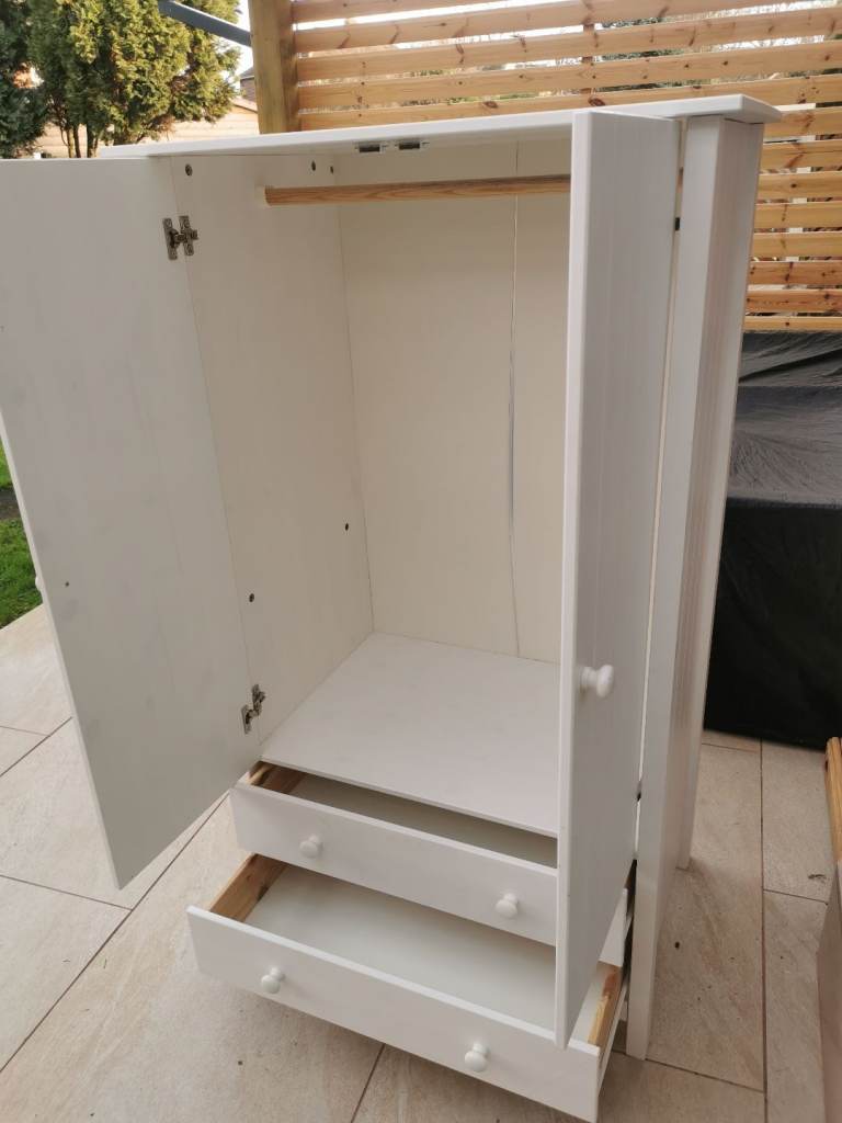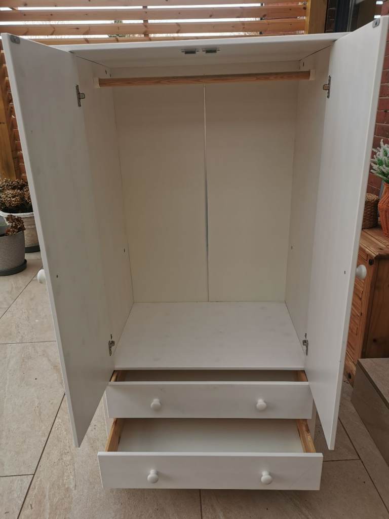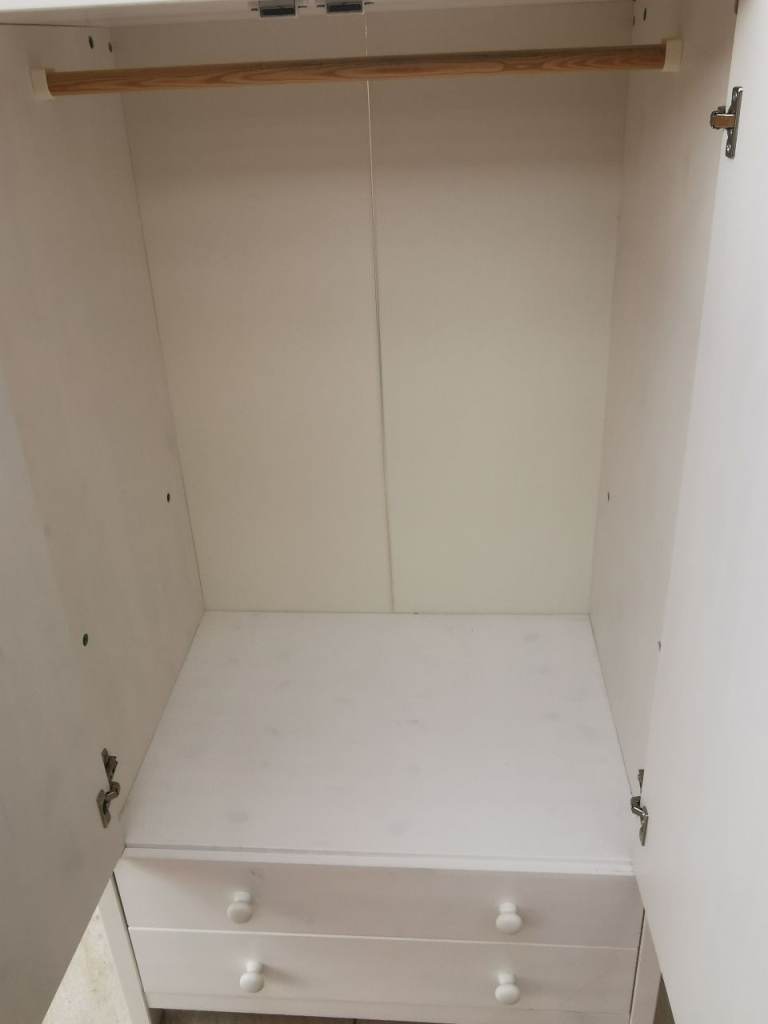 White wardrobe with hanging rail and 2 drawers