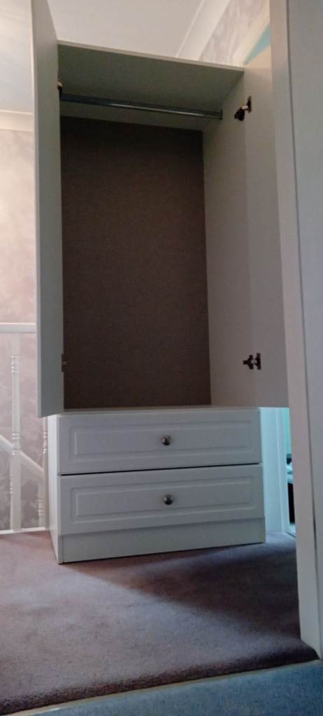 It offers good storage with a hanging rail inside for clothes and is in good. It is fully functional and sturdy.