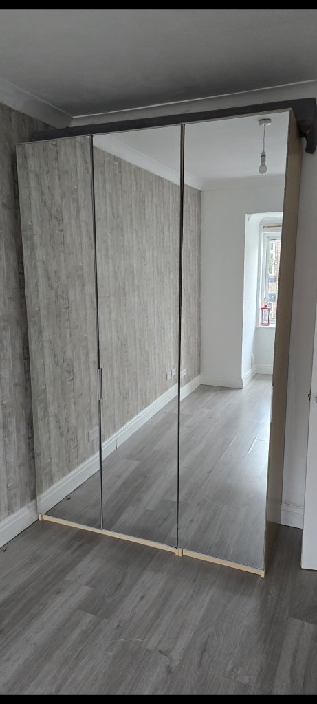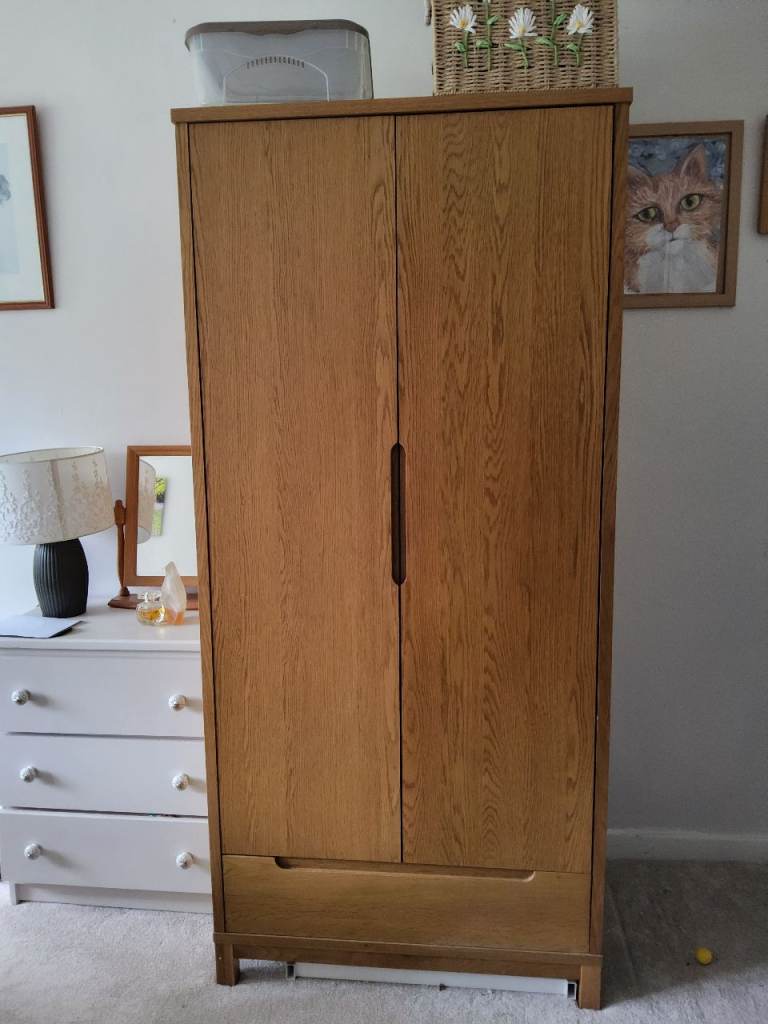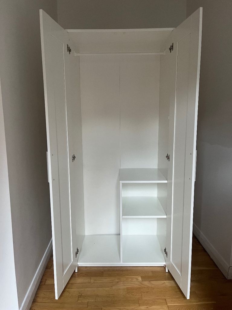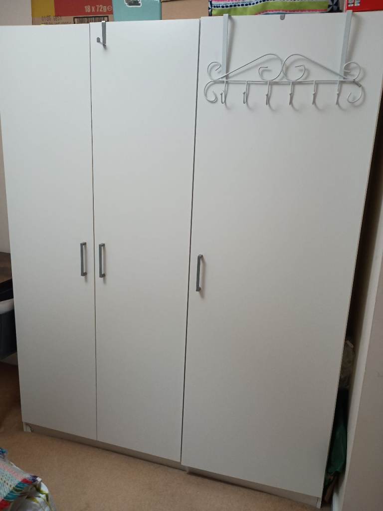 A white wardrobe in good condition with no visible signs of wear and tear. It is to be removed as soon as possible. Fully assembled.