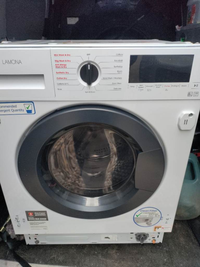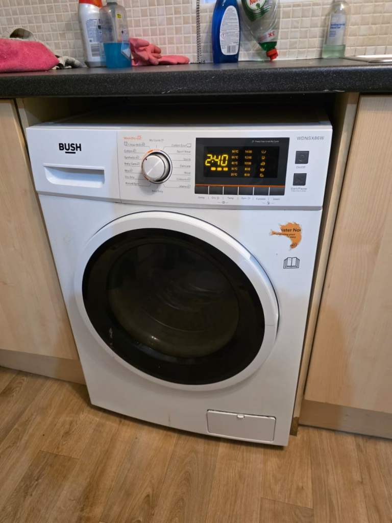 The washing machine functions, we have used it for 3 years. There is a crack on the outside layer of the door but this is not on the inside of the door and therefore there is no leak. Can’t comment on the dryer function as it’s not been used by me. Selling because we’ve bought a new machine with a larger capacity. Collection only from SK17 8 (near Buxton and Bakewell).